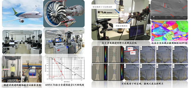值得驕傲的是在航天航空領(lǐng)域,我們通過創(chuàng)新測試技術(shù)為國產(chǎn)大飛機(jī)翱翔藍(lán)天保駕護(hù)航。圍繞航空發(fā)動機(jī)葉片用高溫合金,開發(fā)16項(xiàng)測試評價方法,形成3項(xiàng)國家行業(yè)標(biāo)準(zhǔn),研制鎳基高溫合金全元素測定方法和5類標(biāo)準(zhǔn)物質(zhì),極大補(bǔ)充完善了現(xiàn)有高溫合金測試評價體系。自主研制的腐蝕疲勞試驗(yàn)裝置,為大飛機(jī)用鋁合金結(jié)構(gòu)材料的壽命評估提供了科學(xué)有效的研究手段;跨尺度評價系統(tǒng),實(shí)現(xiàn)了從微米級到厘米級的材料組織和性能的實(shí)時動態(tài)測量,為高溫合金變形、斷裂、失效分析提供了全新的研究手段,填補(bǔ)了國內(nèi)在跨尺度評價相關(guān)技術(shù)領(lǐng)域的空白。