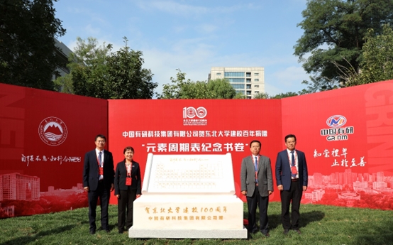 會前,中國有研捐贈元素周期表紀念書卷揭幕儀式在東北大學EPM實驗室樓西側(cè)成功舉行。中國工程院院士、東北大學副校長唐立新,中國有研首席科學家黃小衛(wèi)院士出席此次儀式。東北大學副校長王強、中國有研副總經(jīng)理李志輝作為雙方代表進行了致辭。