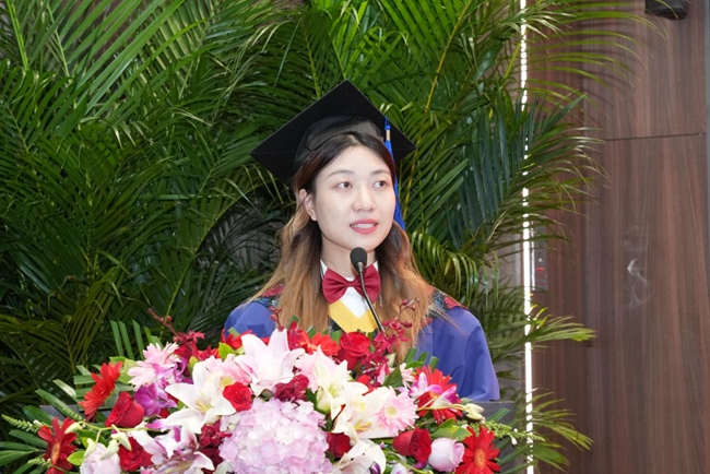 碩士畢業(yè)生、一等院長獎學(xué)金獲得者鄧馨代表全體畢業(yè)生對各位領(lǐng)導(dǎo)和老師的悉心栽培表達誠摯的感謝。她回顧了求學(xué)生涯的難忘經(jīng)歷,分享了對有研精神的感悟。她表示,在未來的道路上,應(yīng)當(dāng)用心尋找人生使命、不斷錘煉斗爭本領(lǐng),將在有研總院練就的技能和本領(lǐng)付諸實踐。