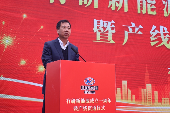 儀式上,有研新能源總經(jīng)理張向軍介紹了項目情況和工作進(jìn)展,胡建軍、胡軍分別致辭,表達(dá)對公司成立一周年和產(chǎn)線貫通的祝賀。