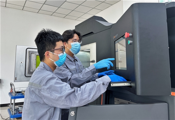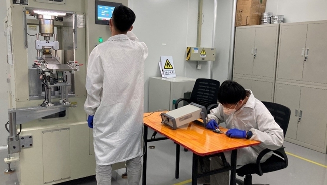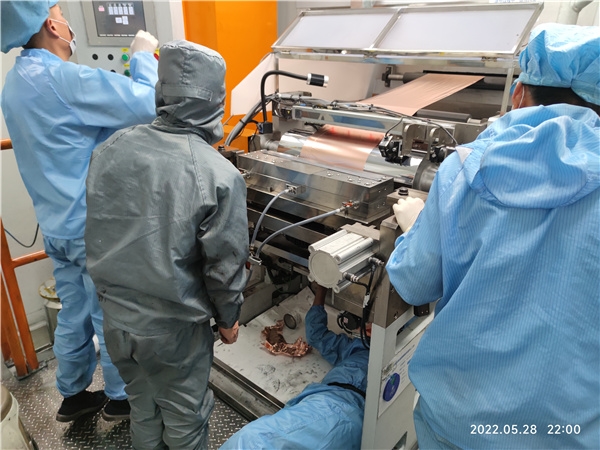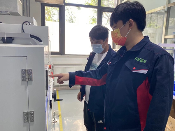 國(guó)聯(lián)研究院技術(shù)人員檢查生產(chǎn)設(shè)備,保障電池試制任務(wù)順利進(jìn)行