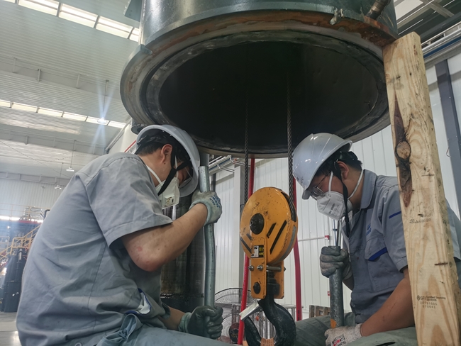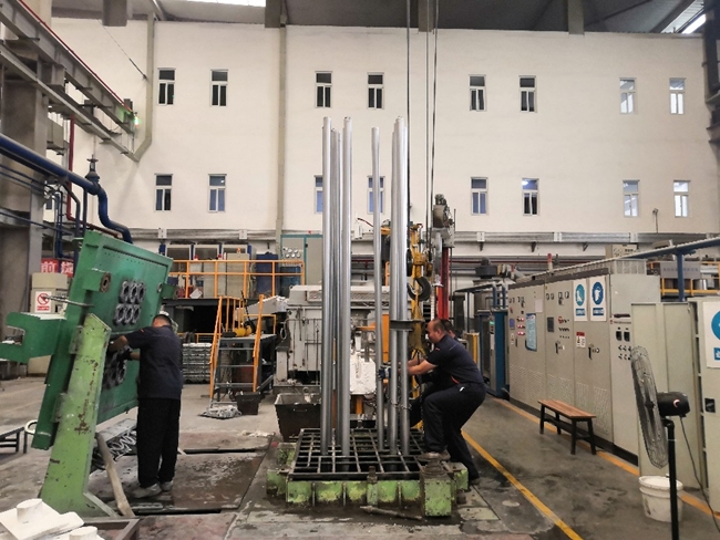 有研復(fù)材生產(chǎn)部員工正在進(jìn)行鋁硅合金鑄棒的生產(chǎn)