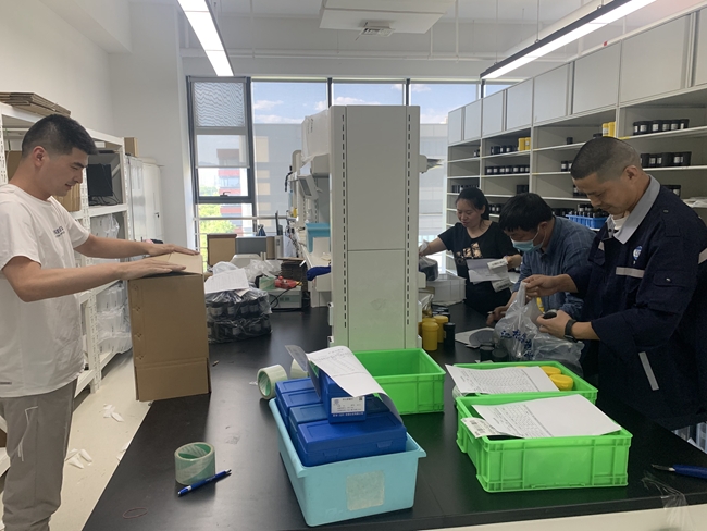 國(guó)合通測(cè)生產(chǎn)運(yùn)營(yíng)部員工正在忙碌地打包產(chǎn)品,確??蛻艄?jié)后第一天能順利收到貨物