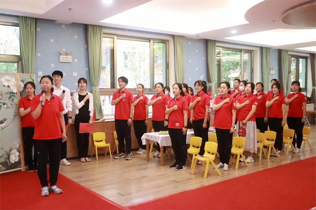 王臣一行為2021-2022年度“有愛有家”先進(jìn)班組、“四有”教師、先進(jìn)個(gè)人、教師新秀及“風(fēng)雨同舟”的獲獎(jiǎng)教職工頒獎(jiǎng)。當(dāng)天,幼兒園還組織開展了師德宣誓、師徒結(jié)對等活動(dòng),系列活動(dòng)的開展,充分展示了有研幼兒園教職員工的風(fēng)采,凝心聚力,進(jìn)一步堅(jiān)定了幼兒教育的初心。