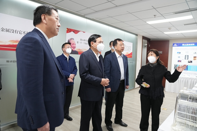國(guó)資委辦公廳主任殷長(zhǎng)波,改革局局長(zhǎng)郭祥玉,科創(chuàng)局局長(zhǎng)茍坪參加調(diào)研。中國(guó)有研黨委書記、董事長(zhǎng)趙曉晨,黨委副書記、總經(jīng)理熊柏青,中國(guó)工程院院士、首席科學(xué)家黃小衛(wèi)及其他領(lǐng)導(dǎo)班子成員陪同調(diào)研。