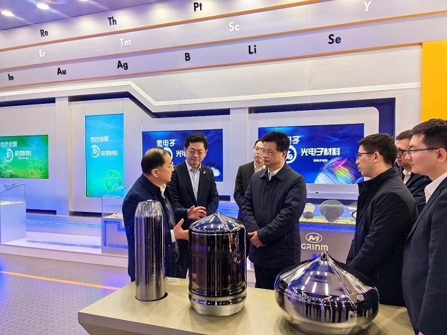 周旗鋼對姜良友一行的到來表示熱烈歡迎,先后陪同參觀了國家新材料測試評價平臺主中心及有色金屬行業(yè)中心、國家動力電池創(chuàng)新中心—檢測實驗中心、國家動力電池創(chuàng)新中心—電池制造中心、高品質(zhì)有色金屬綠色特種冶金國家工程研究中心和中國有研展廳。
