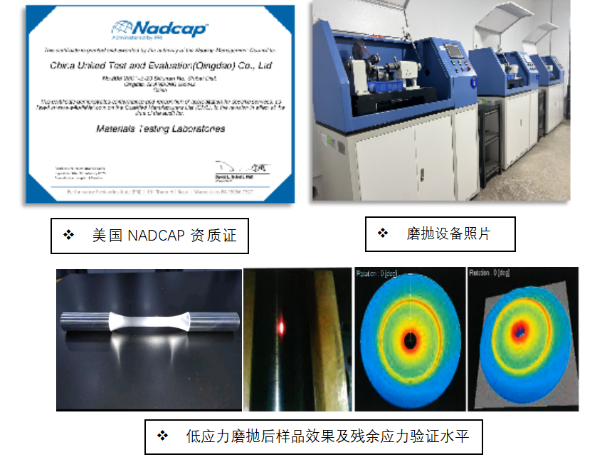 國合青島通過自主設(shè)計和技術(shù)創(chuàng)新,獨立研制成功了國內(nèi)首臺高精度低應(yīng)力磨拋機(Low Stress Polisher),該設(shè)備充分考慮了材料減材制備過程中殘余應(yīng)力釋放,動態(tài)消除試樣徑向加工痕跡和冷加工硬化表面殘余應(yīng)力水平,最大程度還原材料真實的抗疲勞和抗損傷容限性能,填補了國內(nèi)技術(shù)空白,可實現(xiàn)對高溫合金、高強鈦合金、航空鋁合金、高強鋼等航空新材料全自動磨拋處理,磨拋效果可以滿足美國波音、英國羅羅、法國賽峰、中商發(fā)等國內(nèi)外航空主機廠對設(shè)備的加工精度要求,依靠該設(shè)備公司順利通過了美國Nadcap航空材料實驗室(MTL)AC7101/7的Z2加工代碼。