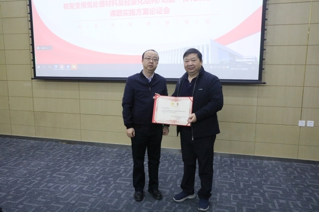近日,有研工研院牽頭承擔(dān)的國家重點研發(fā)計劃項目“核聚變用氚處理材料及輕量化結(jié)構(gòu)/功能一體化屏蔽材料”課題實施方案論證會在有色金屬新材料科創(chuàng)園召開。北京科技大學(xué)教授曲選輝、北京航空航天大學(xué)教授呂廣宏、中國空間技術(shù)研究院研究員周傲松、北京大學(xué)教授李星國和浙江大學(xué)教授陳立新等5名項目專家組專家受邀參會指導(dǎo)。有研工研院總經(jīng)理毛昌輝,副總經(jīng)理楊志民、郝雷出席會議。