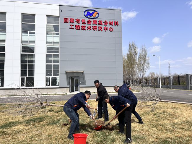 4月6日,有研復(fù)材在燕郊基地開展以“攜手春耕綠化 共建秀美園區(qū)”為主題的植樹活動,公司黨總支書記、董事長樊建中,總經(jīng)理陳春生,副總經(jīng)理馬志新與近百名干部職工一起參加活動。