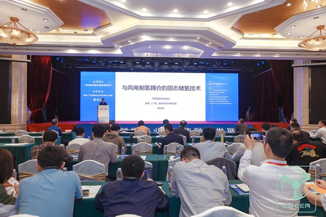 論壇吸引了來自風電、氫能設計院所、研究機構、開發(fā)建設企業(yè)、風電整機及零部件制作企業(yè)、氫能產業(yè)鏈相關企業(yè)的200余位代表參與,與會專家分享交流了風電制氫的典型場景、應用實踐以及發(fā)展思路、產業(yè)模式和技術路徑等相關內容。中國可再生能源學會副理事長、中國有研科技集團有限公司首席專家、有研廣東院總工程師蔣利軍受邀為本次論壇開幕致辭并作《與風電制氫耦合的固態(tài)儲氫技術》主題報告。
