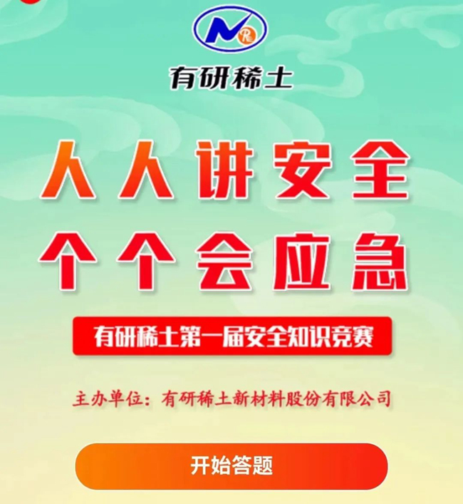 “安全宣傳周”系列活動為“安全月”營造了良好的氛圍,接下來,有研稀土將持續(xù)推進(jìn)安全知識競賽活動、扎實(shí)開展安全培訓(xùn)、隱患排查、應(yīng)急演練、應(yīng)急技能大比武等系列專題活動,著力實(shí)現(xiàn)“人人講安全,個個會應(yīng)急”目標(biāo),夯實(shí)公司安全生產(chǎn)防線,以高水平安全保障公司高質(zhì)量發(fā)展。