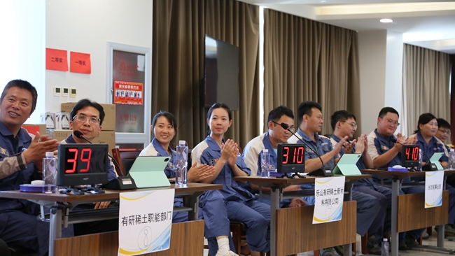 決賽現(xiàn)場(chǎng),8支代表隊(duì)經(jīng)“個(gè)人必答題” “團(tuán)隊(duì)必答題”“團(tuán)隊(duì)搶答題” “團(tuán)隊(duì)風(fēng)險(xiǎn)題”等環(huán)節(jié)激烈角逐,最終榮成稀土代表隊(duì)拔得頭籌,獲團(tuán)隊(duì)第一名;青島稀土代表隊(duì)、稀土金屬及合金事業(yè)部代表隊(duì)分獲團(tuán)隊(duì)比賽第二名和第三名。