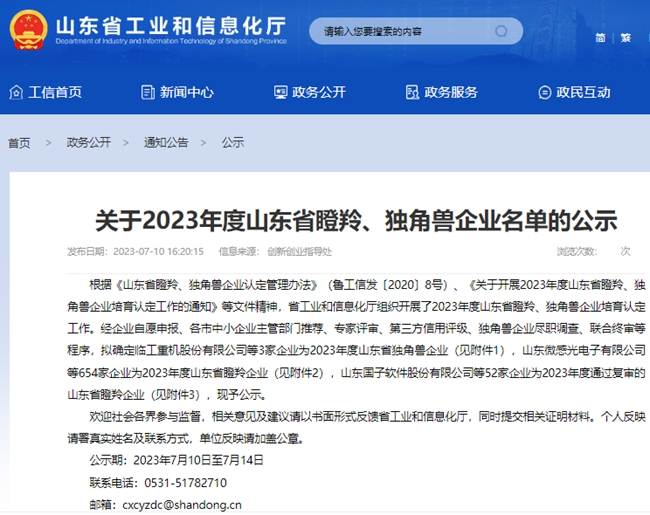 近日,山東省工業(yè)和信息化廳發(fā)布了《關(guān)于公示2023年度山東省瞪羚、獨(dú)角獸企業(yè)名單的公示》,國(guó)合通用(青島)測(cè)試評(píng)價(jià)有限公司入選山東省瞪羚企業(yè)。