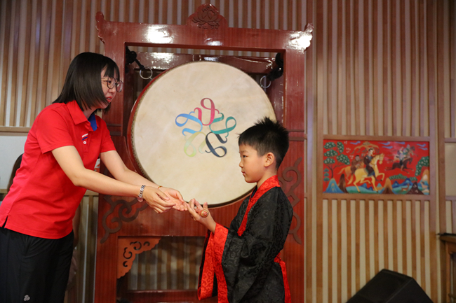 孩子們通過擊鼓來表明自己的志向,擊鼓的聲音越響,聲音傳得越遠(yuǎn),說明志向就越遠(yuǎn)大。借此希望孩子茅塞頓開、建功立業(yè)。孩子們在擊鼓聲中,表明自己的心志。