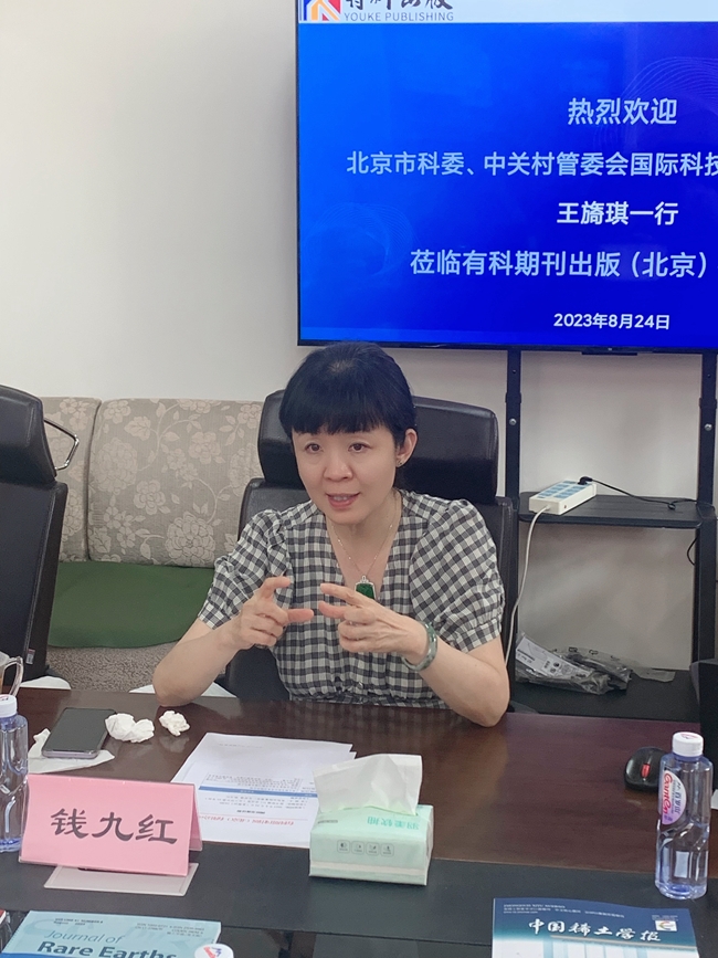 王旖琪對有科出版旗下旗艦刊《稀有金屬(英文版)》和《稀土學(xué)報(bào)(英文版)》入選市科委、中關(guān)村管委會“2023年中關(guān)村國家自主創(chuàng)新示范區(qū)提升國際化發(fā)展水平項(xiàng)目”表示祝賀,并對有科出版所取得工作成效給予了高度肯定。她指出,打造國際一流科技期刊是中關(guān)村論壇的重要方向之一,國際科技合作中心與有科出版在國際科技交流合作領(lǐng)域有諸多交集,將進(jìn)一步全方位深化合作,不斷提升北京科技開放創(chuàng)新國際化水平及中關(guān)村論壇國際影響力,同時(shí)將持續(xù)優(yōu)化支持項(xiàng)目設(shè)置與管理要求,更加有效地服務(wù)一流科技期刊培育與數(shù)據(jù)平臺建設(shè)。