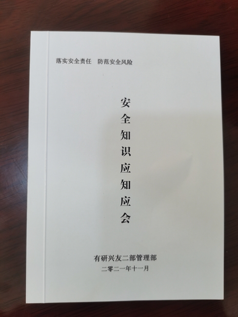本次活動(dòng)的開展以新消法聚焦的重點(diǎn)問題為切入點(diǎn),針對(duì)火災(zāi)預(yù)防、消防組織、滅火救援等關(guān)鍵環(huán)節(jié)進(jìn)行了演練。二部園區(qū)安全員按照消防預(yù)案對(duì)企業(yè)消防安全責(zé)任落實(shí)和如何做好消防安全管理工作進(jìn)行了宣貫,同時(shí)為便于職工進(jìn)一步學(xué)習(xí)掌握相關(guān)消防知識(shí)、鞏固學(xué)習(xí)成果,二部園區(qū)管理部專門制作發(fā)放了《消防安全工作應(yīng)知應(yīng)會(huì)》“口袋書”。