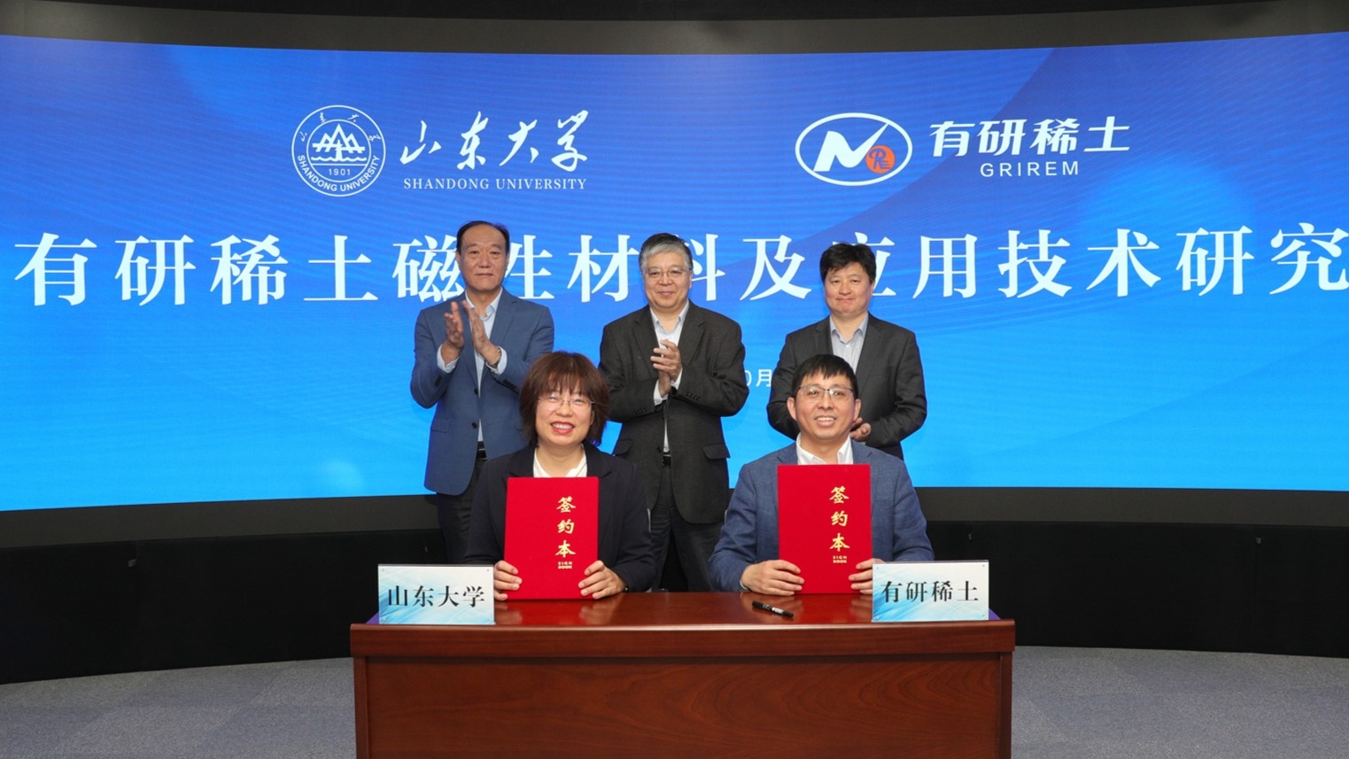 10月17日,有研稀土與山東大學(xué)舉行共建磁性材料及應(yīng)用技術(shù)研究院簽約儀式。山東大學(xué)副校長、山東大學(xué)(威海)校長劉建亞,山東大學(xué)(威海)副校長趙玉璞、夏利東,山東大學(xué)機電與信息工程學(xué)院常務(wù)副院長王麗,威海市科學(xué)技術(shù)局黨組書記、局長譚遠國;有研新材黨委副書記、總經(jīng)理,有研稀土董事長于敦波,有研稀土總經(jīng)理劉榮輝等出席儀式。