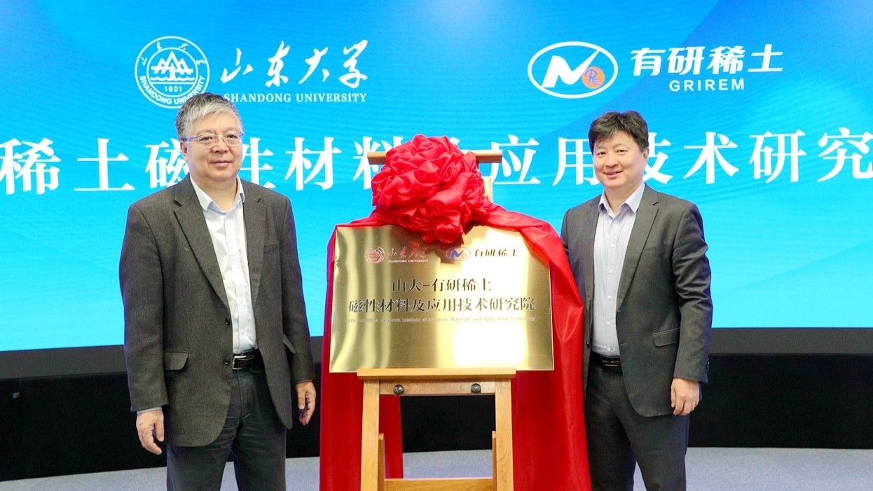 于敦波和劉建亞共同為研究院揭牌,劉榮輝、王麗分別代表雙方簽署了磁性材料及應(yīng)用技術(shù)研究院共建協(xié)議。于敦波在致辭中表示,與山東大學(xué)共建研究院是有研稀土做大做強稀土新材料產(chǎn)業(yè)、推動構(gòu)建政產(chǎn)學(xué)研深度融合優(yōu)良生態(tài)的關(guān)鍵舉措,對吸納高層次人才、推動行業(yè)關(guān)鍵技術(shù)突破、加快科研成果轉(zhuǎn)化、實現(xiàn)互促式發(fā)展具有重要意義。他希望以共建研究院為契機,進一步加強與山東大學(xué)以及威海市相關(guān)部門、企業(yè)的合作,以產(chǎn)業(yè)鏈布局創(chuàng)新鏈,加快推進技術(shù)創(chuàng)新與產(chǎn)學(xué)研合作,為落實國家戰(zhàn)略布局和區(qū)域經(jīng)濟社會發(fā)展作出央企貢獻。