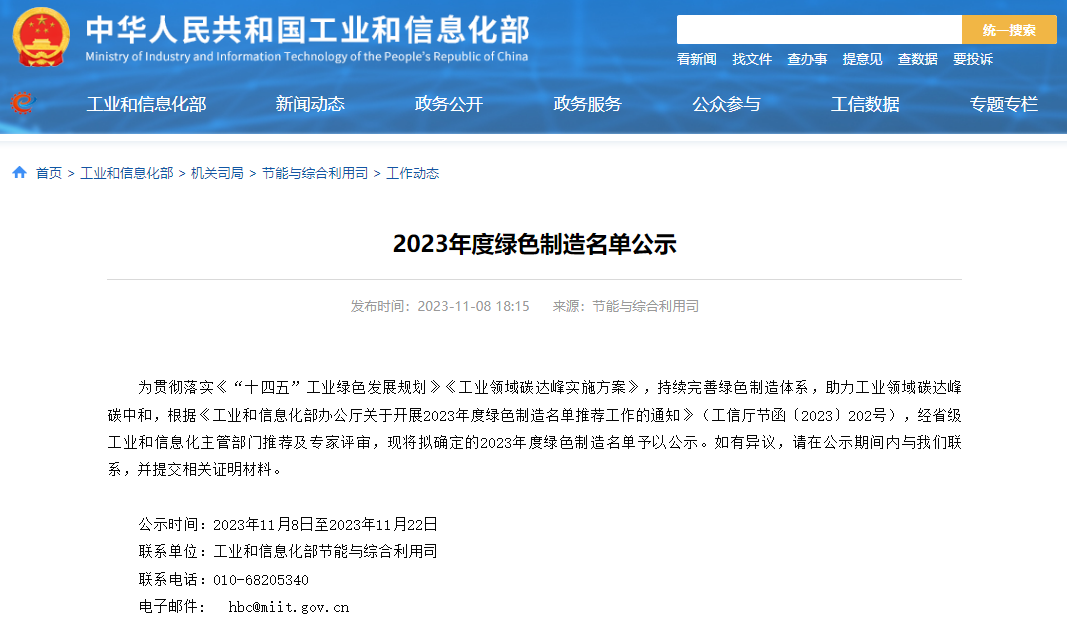 11月8日,工業(yè)和信息化部就擬入選的2023年度綠色制造名單進行公示,由國合通測作為第三方評價機構(gòu)推薦的西安超晶科技股份有限公司榮登榜單。