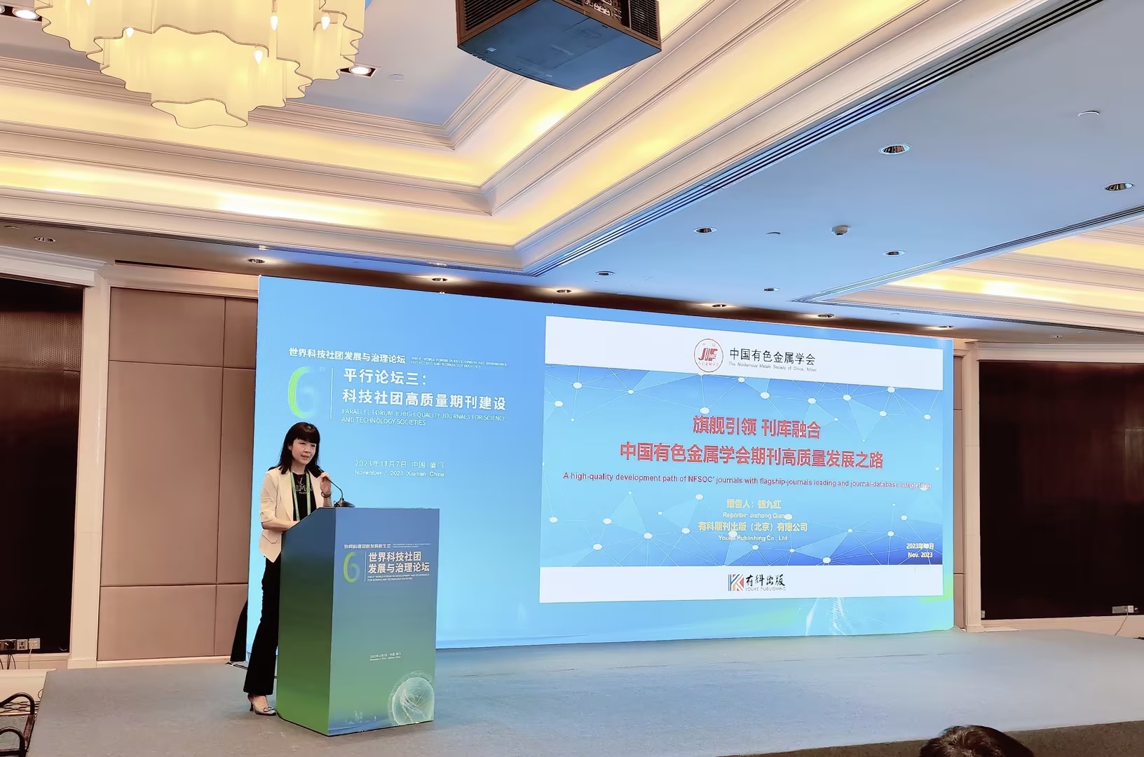 “科技社團(tuán)高質(zhì)量期刊建設(shè)”平行論壇邀請(qǐng)了來自有科出版、英國物理學(xué)會(huì)出版社、約翰威立國際出版集團(tuán)和中華醫(yī)學(xué)會(huì)雜志社負(fù)責(zé)人對(duì)“科技社團(tuán)期刊高質(zhì)量發(fā)展”議題進(jìn)行研討,論壇主持人為中國康復(fù)醫(yī)學(xué)會(huì)秘書長(zhǎng)李云波。錢九紅在“科技社團(tuán)高質(zhì)量期刊建設(shè)”平行論壇作題目為《旗艦引領(lǐng) 刊庫融合 中國有色金屬學(xué)會(huì)期刊高質(zhì)量發(fā)展之路》的報(bào)告。報(bào)告從建立競(jìng)爭(zhēng)引領(lǐng)、開放協(xié)作新機(jī)制,構(gòu)建科技評(píng)價(jià)良好生態(tài),強(qiáng)化辦刊力度,刊庫融合發(fā)展新路徑等方面介紹了有色金屬期刊集群高質(zhì)量發(fā)展的探索與思考,并提出了“聚人才、搭平臺(tái)、多方協(xié)同”的一流期刊出版集團(tuán)未來發(fā)展路徑。