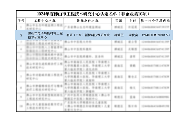 7月9日,佛山市科學(xué)技術(shù)局發(fā)布2024年度佛山市工程技術(shù)研究中心認(rèn)定名單,由有研廣東院申報(bào)的“佛山市電子功能材料工程技術(shù)研究中心”成功獲得認(rèn)定。