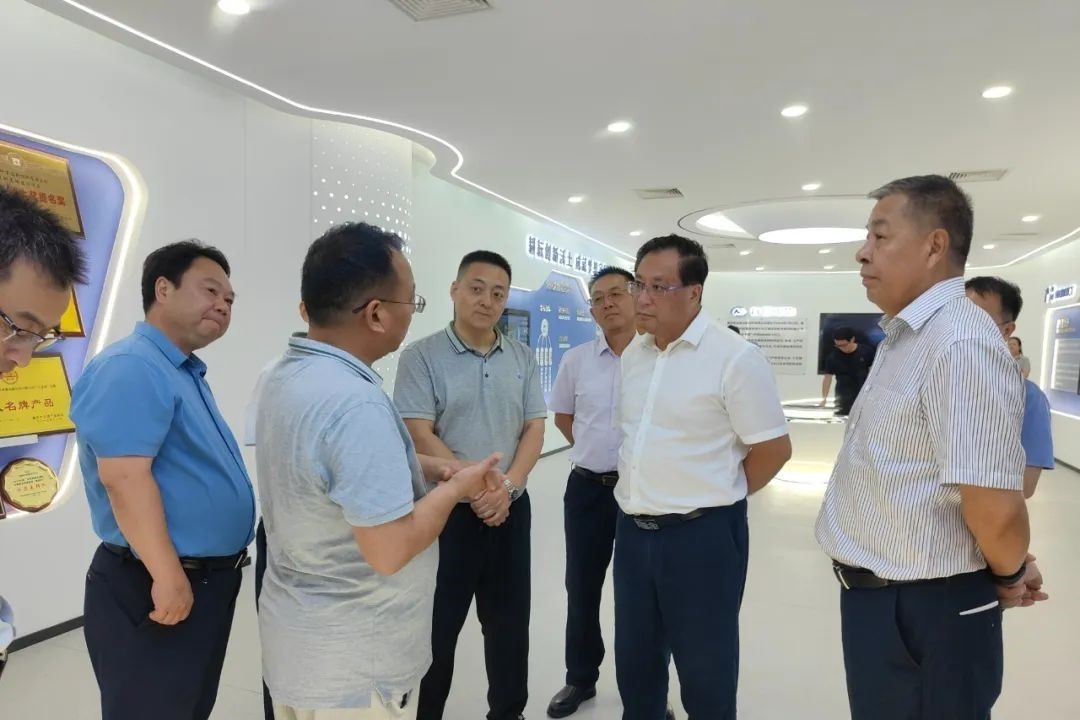 沈金強(qiáng)一行先后參觀了公司展覽廳和智能制造控制中心,聽取了公司副總經(jīng)理王毅關(guān)于主營業(yè)務(wù)、發(fā)展規(guī)劃、技術(shù)攻關(guān)、產(chǎn)品研發(fā)、科技項(xiàng)目、人才培育等情況的匯報(bào),仔細(xì)詢問企業(yè)創(chuàng)新發(fā)展存在的困難和問題,勉勵(lì)公司要堅(jiān)定企業(yè)發(fā)展信心,精準(zhǔn)對接市場需求,加大研發(fā)力度,提高企業(yè)競爭力和市場占有率。他強(qiáng)調(diào),企業(yè)是科技創(chuàng)新的主體,政府要營造創(chuàng)新涌動(dòng)、活力澎湃的良好生態(tài),努力把科技創(chuàng)新“關(guān)鍵變量”轉(zhuǎn)化為高質(zhì)量發(fā)展“最大增量”,企業(yè)要立足綦江資源稟賦和產(chǎn)業(yè)優(yōu)勢,緊盯市場需求加強(qiáng)科技創(chuàng)新,不斷提升產(chǎn)品質(zhì)量和核心競爭力。
