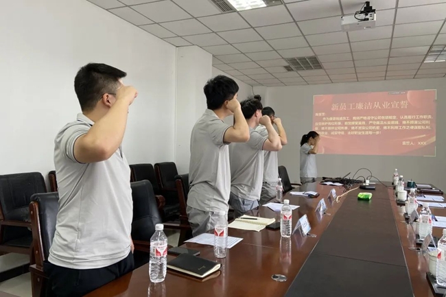 培訓(xùn)內(nèi)容涉及市場發(fā)展、技術(shù)研發(fā)、生產(chǎn)制備、質(zhì)量管理等多個板塊,由公司部分部門領(lǐng)導(dǎo)及核心骨干人員擔(dān)當(dāng)授課講師,全面增強了新員工對業(yè)務(wù)知識的了解。綜合辦公室經(jīng)理張品為新入職員工講授了保密知識,開展廉潔文化教育,并組織新員工進(jìn)行了廉潔從業(yè)宣誓。