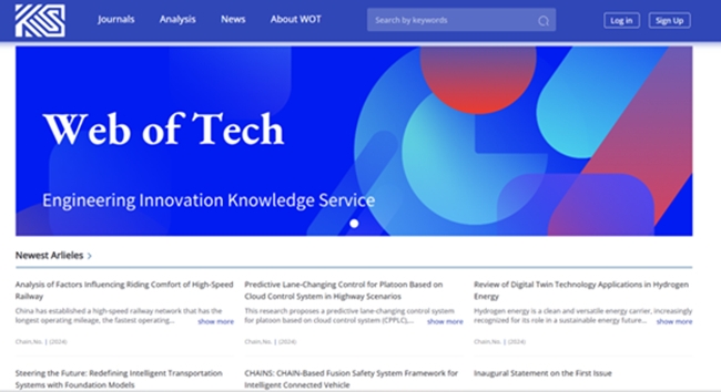 “Web of Tech”平臺(tái)(www.weboftech.com),面向全球,共計(jì)收錄國(guó)內(nèi)期刊93萬(wàn)余篇、國(guó)外期刊50余萬(wàn)篇英文題錄,可實(shí)現(xiàn)研究趨勢(shì)、科研選題、期刊發(fā)文分析等功能,成為本領(lǐng)域一流期刊展示和行業(yè)資訊傳播的重要窗口。