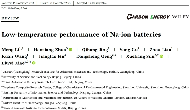 同時,團(tuán)隊(duì)發(fā)表于《Carbon Energy》上題為“Low-temperature performance of Na-ion batteries”(影響因子19.5)的綜述性文章分析總結(jié)了鈉離子電池在低溫工作時所面臨的鈉離子傳輸動力學(xué)與性能衰減的相關(guān)性,并從理論機(jī)制角度闡述了不同環(huán)境下的離子擴(kuò)散行為,分析了提升鈉離子低溫性能的實(shí)際方案,為發(fā)展特種鈉離子電池提供了有力證據(jù)。