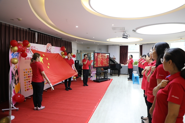 全體教職工在國旗下莊嚴宣誓,承諾做到嚴格恪守幼兒教師的職業(yè)道德規(guī)范,為孩子快樂健康成長奮斗終生。