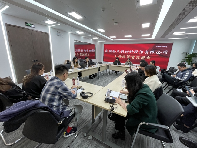 12月6日,有研粉材在證券日報上海路演中心舉辦投資者交流活動,吸引了數(shù)十家上海知名投資機構(gòu)和基金公司參與。此次交流活動的重點是與投資者進行深入溝通,分享公司的最新動態(tài)和發(fā)展規(guī)劃,解答投資者疑問。