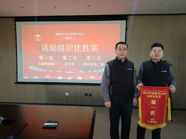 1月15日,有研億金召開(kāi)“質(zhì)量年”活動(dòng)總結(jié)大會(huì),對(duì)過(guò)去一年的質(zhì)量提升工作進(jìn)行全面回顧與總結(jié),并對(duì)表現(xiàn)卓越的團(tuán)隊(duì)和個(gè)人進(jìn)行表彰。會(huì)議由質(zhì)量技術(shù)部負(fù)責(zé)人主持,全體領(lǐng)導(dǎo)班子和質(zhì)量管理相關(guān)人員參加會(huì)議。