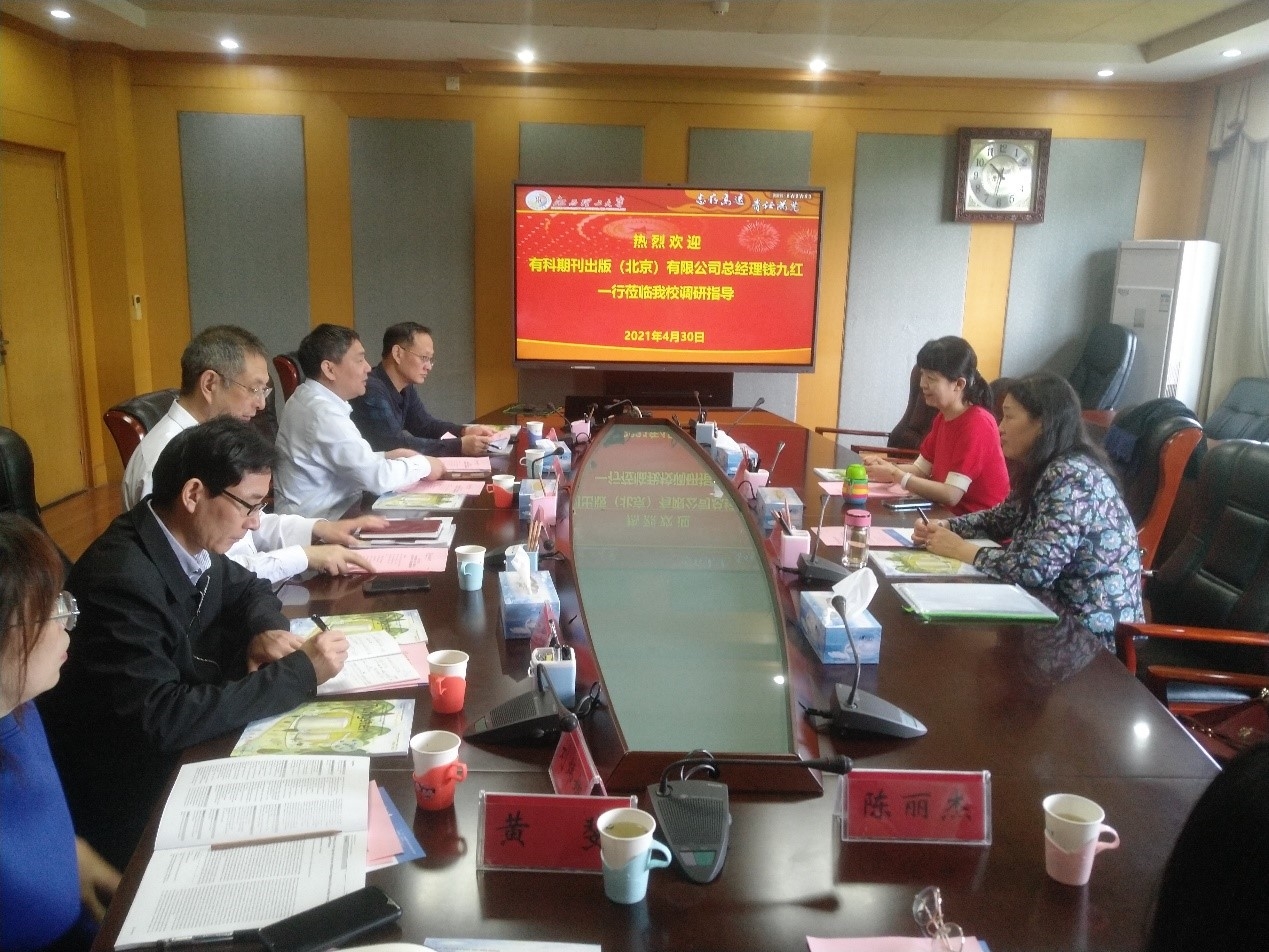 2021年4月30日,有科出版總經(jīng)理錢九紅一行赴江西理工大學(xué)期刊社就有色期刊集群化建設(shè)及校企合作辦刊等事項(xiàng)進(jìn)行深入商談與交流。江西理工大學(xué)副校長(zhǎng)羅仙平、期刊社社長(zhǎng)黃志紅、副社長(zhǎng)曾偉明及期刊社各編輯部負(fù)責(zé)人出席。會(huì)議由羅仙平主持。會(huì)前,江西理工大學(xué)黨委書記、《鎢科技(英文)》主編楊斌教授會(huì)見錢九紅一行。