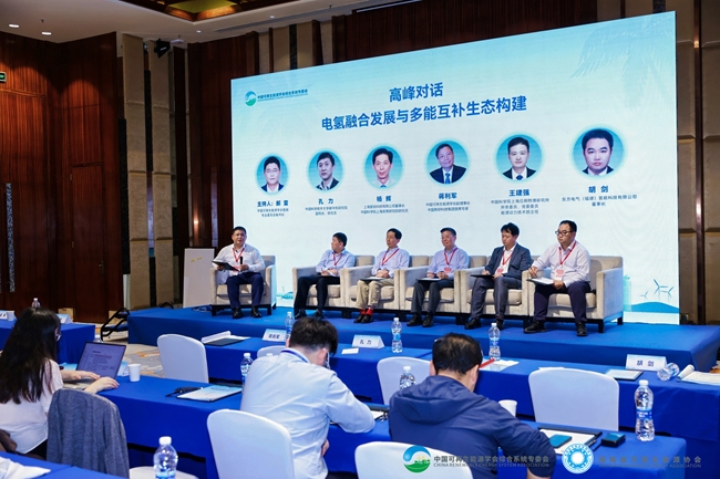 郝雷主持了分論壇的高峰對話環(huán)節(jié),中國有研蔣利軍,中國科學技術大學碳中和研究院副院長、研究員孔力,上海氫銳科技有限公司董事長、中國科學院上海高等研究院研究員楊輝,中國科學院上海應用物理研究所所務委員、黨委委員、能源動力技術部主任王建強,東方電氣(福建)氫能科技有限公司董事長胡劍參加對話,并就“電氫融合發(fā)展與多能互補生態(tài)構建”主題展開探討。