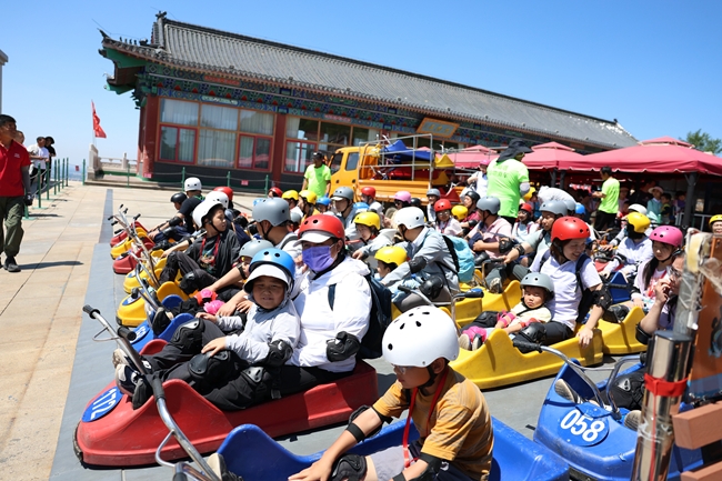 最先開展的登山活動非??简烍w力和意志。孩子們或三兩成隊,腳步輕快地競速上山,如靈動的小鹿穿梭于山林間;或結(jié)伴而行,走走停停,歡聲笑語隨山風飄散在濃密的綠葉之上。下行的山地滑車項目最受孩子們喜愛。在家長的陪伴下,孩子們?nèi)卑踩b備坐上滑車,沿著蜿蜒的軌道穿梭于山林之間,感受疾馳風速與自然美景,山林間回蕩著孩子們驚呼和歡笑。