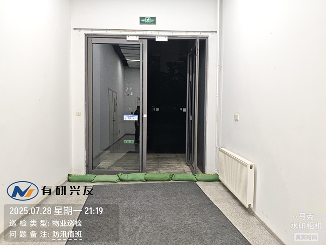 汛中快速響應(yīng)。有研興友黨員干部一馬當(dāng)先、沖鋒在前,主動請纓24小時駐守園區(qū),輪班巡查地下空間、動力站、配電室等關(guān)鍵部位;在地下車庫入口、廠房大門等易澇重點區(qū)域,采取堆沙袋、設(shè)擋水板等方式進(jìn)行重點防護(hù),連續(xù)3次的強降雨中,累計冒雨巡查20余次,處置隱患10余處,有力保障了園區(qū)無積水倒灌、無設(shè)施損壞,安全平穩(wěn)度汛。