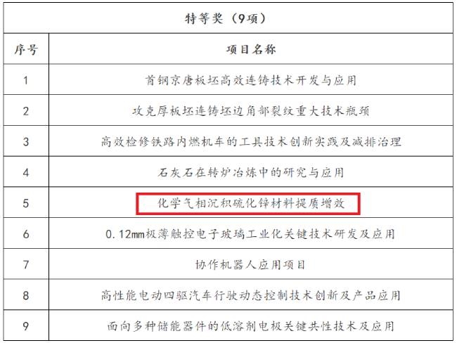 近日,中國機(jī)械冶金建材職工技術(shù)協(xié)會公布了2021全國機(jī)械冶金建材職工技術(shù)創(chuàng)新成果獲獎名單,有研國晶輝“化學(xué)氣相沉積硫化鋅材料提質(zhì)增效”榮獲創(chuàng)新成果特等獎。