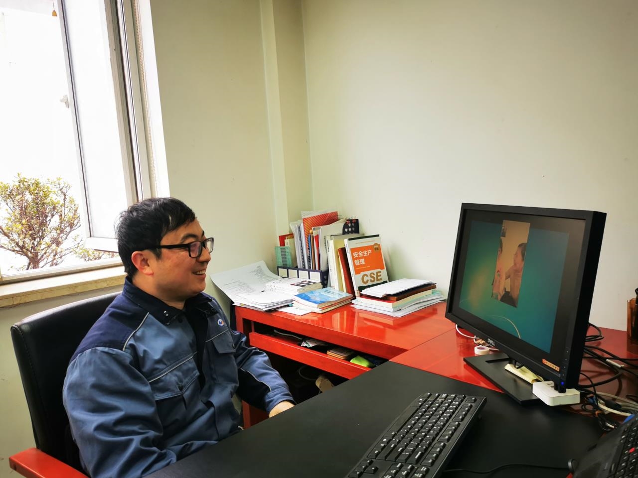 因訂單任務(wù)緊張,樂山有研公司全體員工春節(jié)期間不休息,忙生產(chǎn),搶進(jìn)度。圖為公司總經(jīng)理?xiàng)詈瓴┏ο虮本┑募胰艘曨l拜年。
