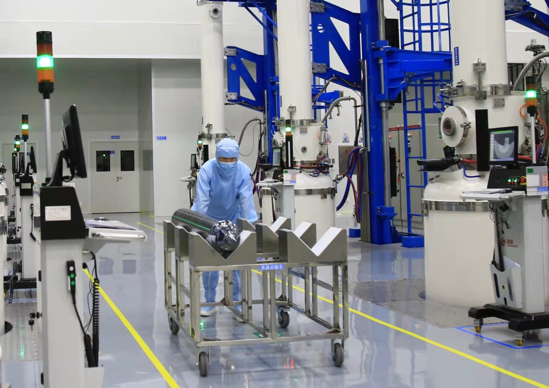 因燕郊疫情影響,有研資環(huán)院未能返京的員工主動(dòng)要求值班。圖為值班人員在二部靶材廠房巡查。