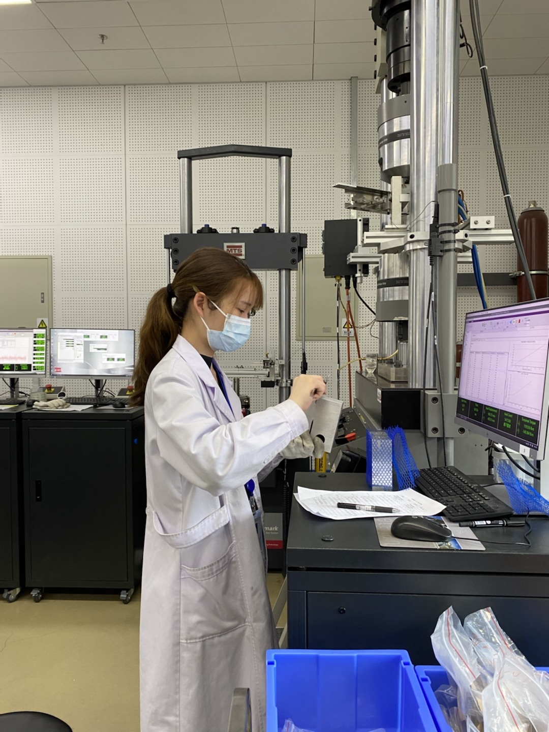 國(guó)標(biāo)檢驗(yàn)性能測(cè)試部員工為確保某重要試樣能及時(shí)交付,春節(jié)期間堅(jiān)守崗位,為客戶提供及時(shí)、高效、可靠的測(cè)試服務(wù)。圖為2月1號(hào)上午測(cè)試人員在測(cè)試試樣尺寸。