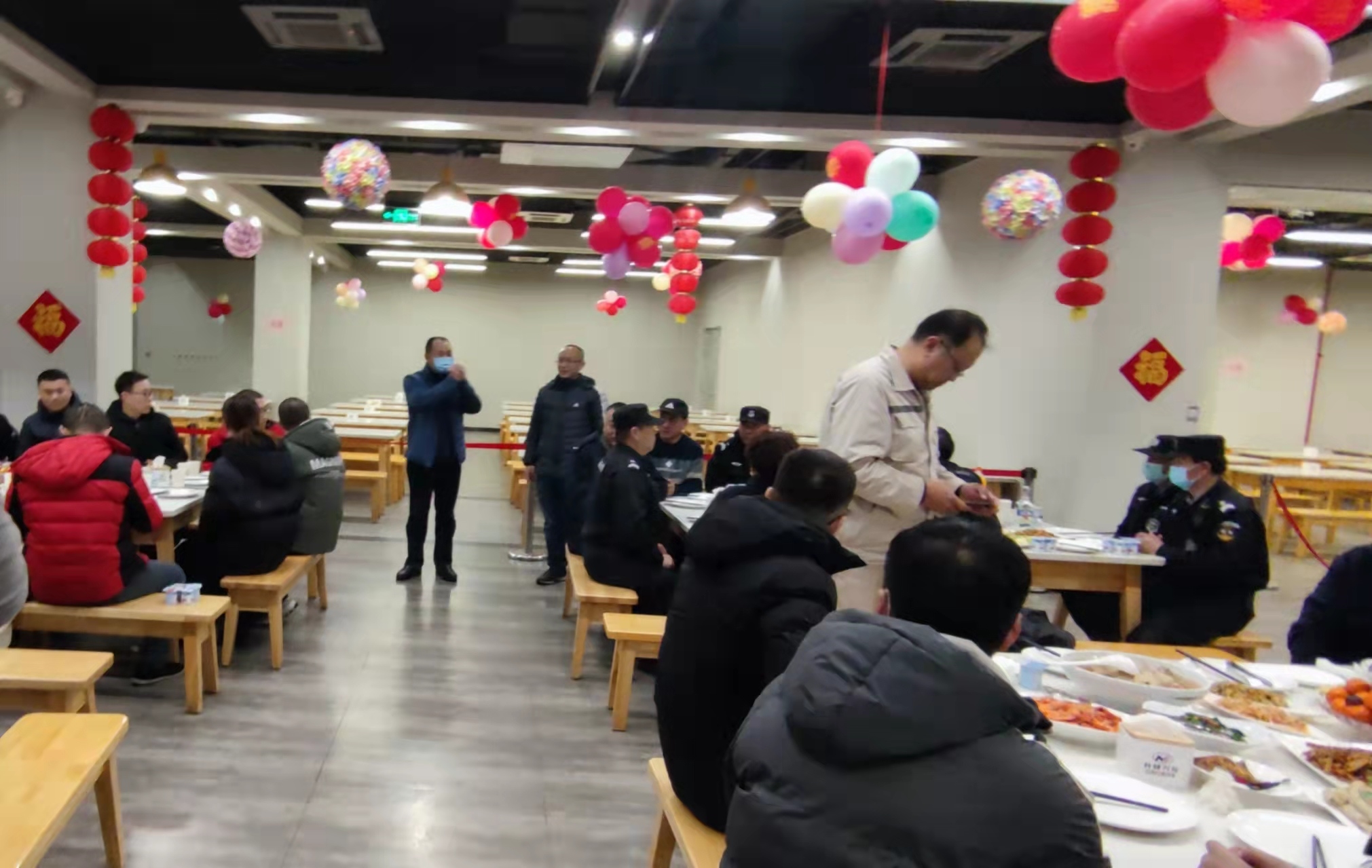 懷柔科創(chuàng)園職工餐廳準(zhǔn)備了精致豐盛的年夜飯,讓節(jié)日還在園區(qū)工作的員工也能感受到濃濃的年味。圖為有研興友總經(jīng)理沈健檢查年夜飯情況,向就餐員工拜年。