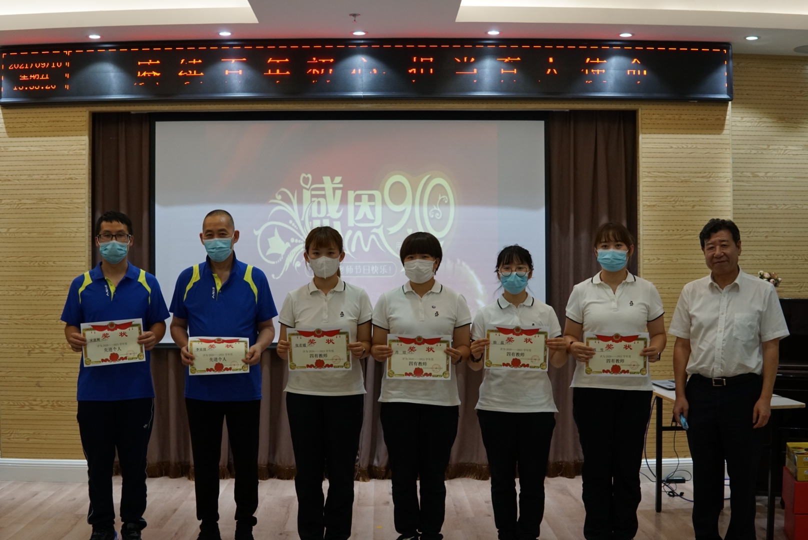 當(dāng)天,有研幼兒園舉辦主題為“賡續(xù)百年初心,擔(dān)當(dāng)育人使命”的教師節(jié)慶祝活動(dòng),活動(dòng)在張福萍園長(zhǎng)熱情洋溢的講話中拉開(kāi)序幕,全體教職工在國(guó)旗下莊嚴(yán)宣誓,承諾做到嚴(yán)格恪守幼兒教師的職業(yè)道德規(guī)范,保護(hù)幼兒的身心健康發(fā)展。活動(dòng)表彰了2020-2021年度“有愛(ài)有家”先進(jìn)班組、“四有”教師、先進(jìn)個(gè)人、教師新秀和“風(fēng)雨同舟”等集體和個(gè)人。