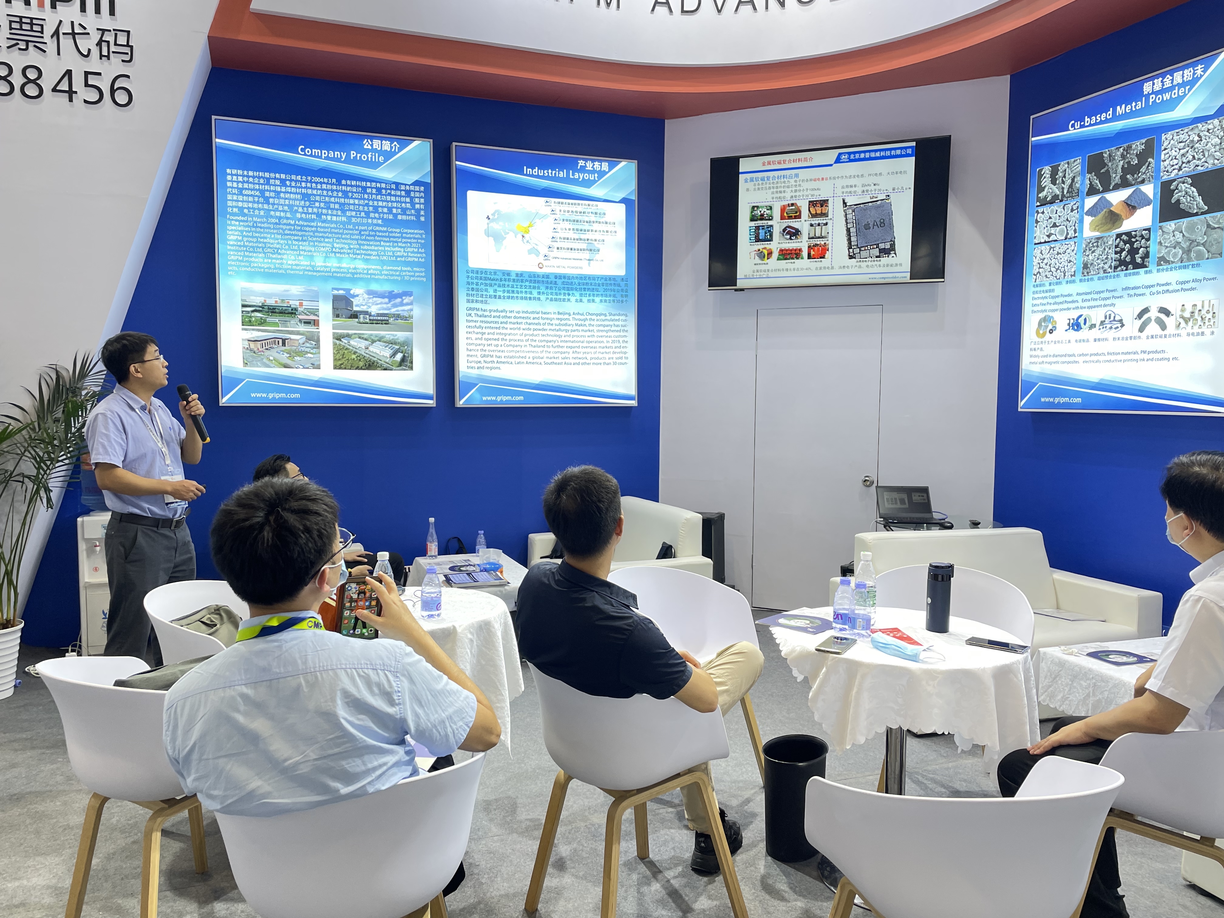 此次參展是有研粉材在上市后第一次以集團公司形象亮相專業(yè)展會。公司展出了粉末冶金用銅基金屬粉末、3D打印用金屬粉末及制品、特種粉材、錫基焊料等50余種產(chǎn)品,涉及粉末冶金零部件、金剛石工具、3D打印和微電子焊接等應用領域。同時,公司石韜博士、盛艷偉博士在展臺現(xiàn)場分別作了“PM零件用銅及銅合金粉”和“金屬軟磁復合材料簡介及應用”的主題講座,很多客戶在現(xiàn)場進行了詳細咨詢,希望通過這次機會進行深入合作。