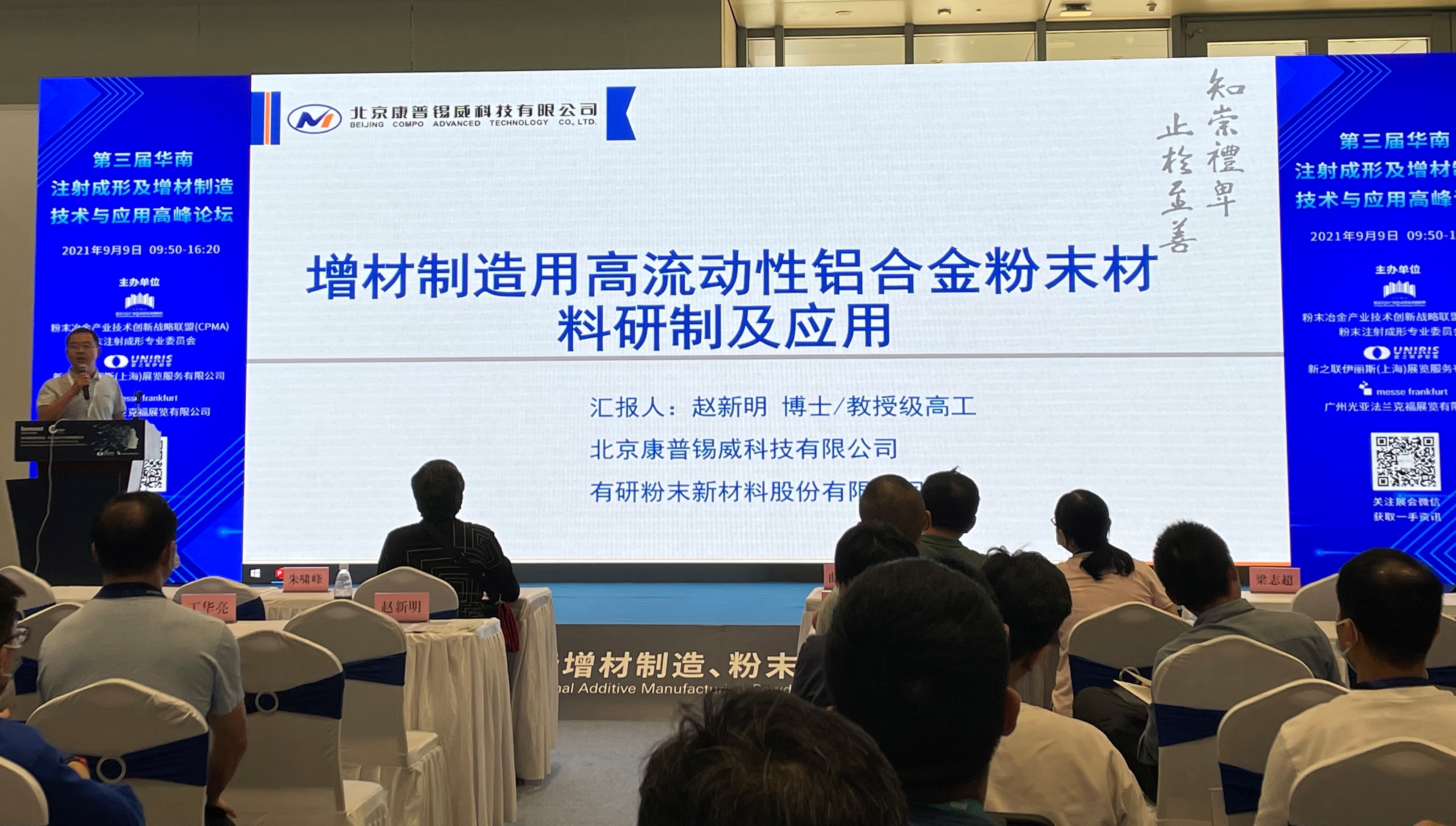 展會同期舉辦了多場高品質學術論壇,趙新明博士代表康普錫威公司就“增材制造用高流動性鋁合金粉末材料研制及應用”進行了專題報告,對3D打印粉體材料產(chǎn)品進行了介紹和推廣。