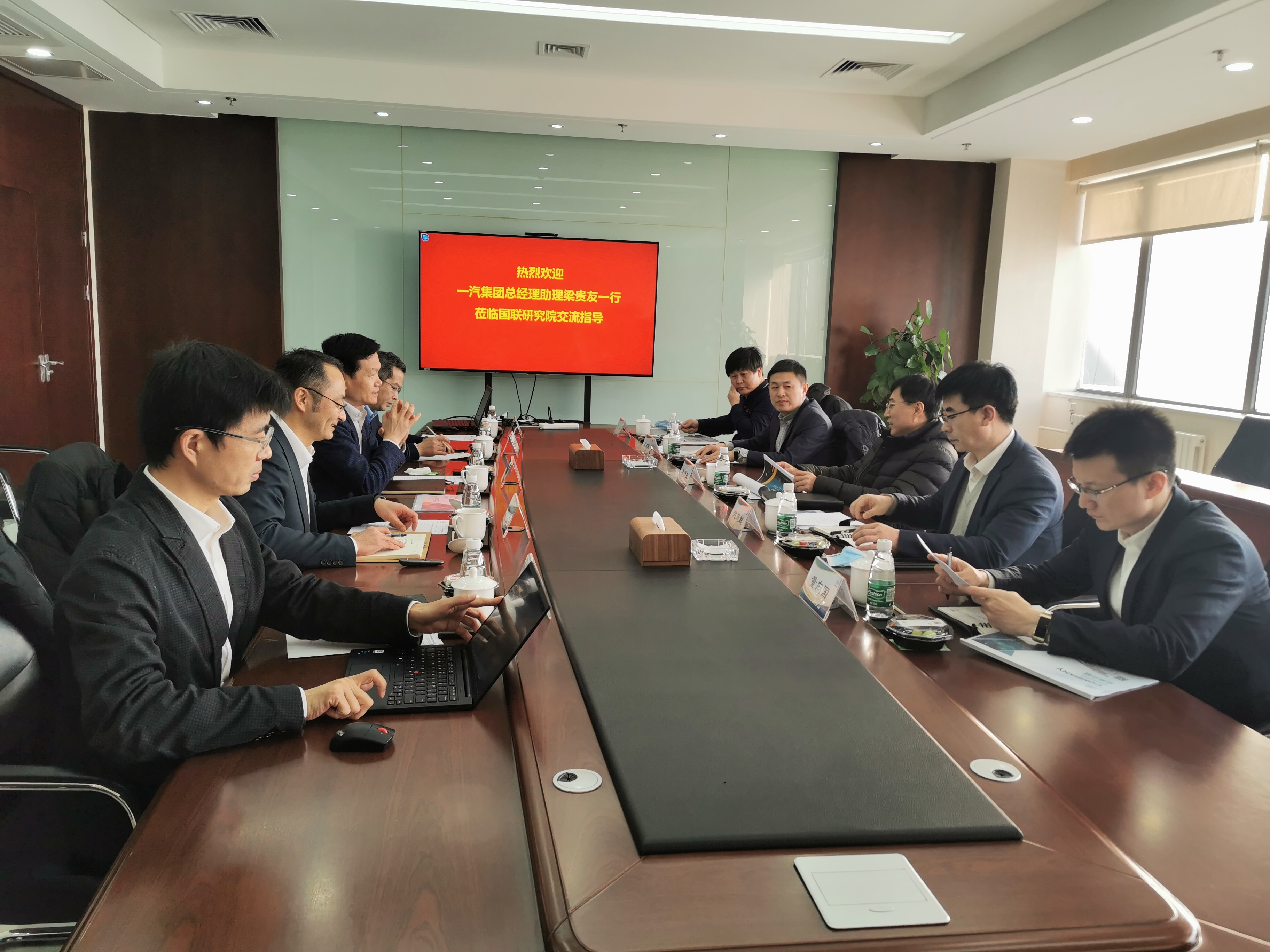 2月18日,一汽集團(tuán)總經(jīng)理助理梁貴友,一汽集團(tuán)新能源開發(fā)院院長趙慧超、智能網(wǎng)聯(lián)開發(fā)院副院長高洪偉一行到訪國聯(lián)研究院,有研集團(tuán)副總經(jīng)理、國聯(lián)研究院董事長黃倬,國聯(lián)研究院黨委書記、總經(jīng)理徐冉,國聯(lián)研究院副總經(jīng)理張向軍、副總經(jīng)理王建濤陪同參觀并座談交流。