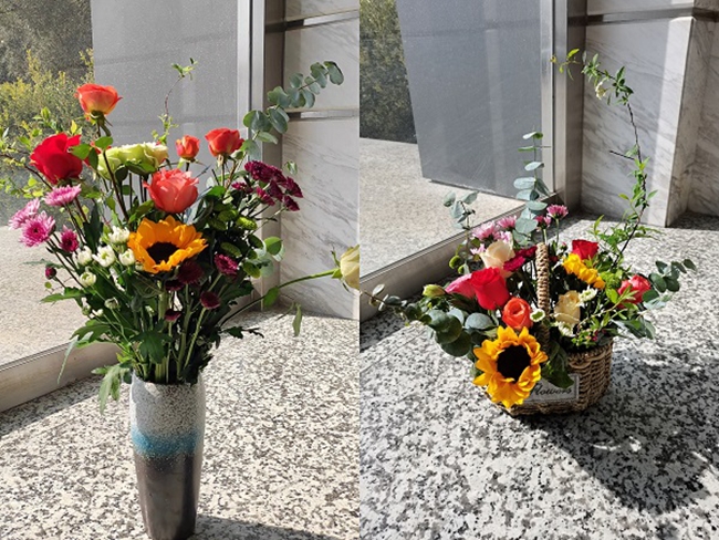 園藝老師為大家講解了插花的技巧,通過老師的講解,女職工們進一步了解了花瓶和花籃的不同插花步驟和展示效果,同時了解了不同品種的花卉代表著不同的含義,有著不同的花語。