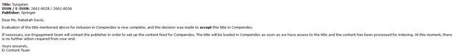 3月16日,由江西理工大學(xué)和中國有色金屬學(xué)會主辦,有科出版運(yùn)營的《鎢科技(英文)》(《Tungsten》)收到美國工程索引數(shù)據(jù)庫(EI Compendex)正式收錄通知。至此,有科出版運(yùn)營出版的7本中、英文期刊均被EI數(shù)據(jù)庫收錄。