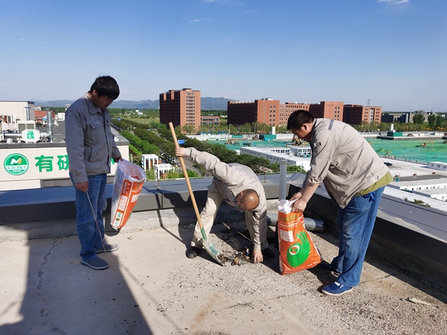 在懷柔園區(qū),工作人員清洗樓宇墻面,清理維護循環(huán)水系統(tǒng),并對室外地面、配電設施及動力站等逐一進行安全排查,及時進行維護保養(yǎng);在二部園區(qū),為應對即將到來的用電高峰及雨季,工作人員及時開展了配電設施檢修和供電線路維護,確保夏季供電可靠和安全運行;在北太園區(qū),為保證夏季空調正常運行,工作人員及時開展了空調機的維護、清洗工作,既提高了空調制冷效果,又有效改善了空氣質量。