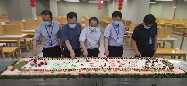 6月6日,懷柔園區(qū)餐廳正式恢復(fù)自助餐供餐服務(wù),園區(qū)職工回到久違的職工餐廳,面對熟悉的場景、豐富的餐品、整潔的環(huán)境,臉上洋溢出重逢的喜悅和笑容。6月7日,各單位恢復(fù)往日繁忙的景象,職工餐廳也信心滿滿,用飽滿的工作熱情和積極擔(dān)當(dāng)?shù)墓ぷ鳡顟B(tài),為全體員工提供優(yōu)質(zhì)的餐飲服務(wù)。為了鼓舞士氣,職工餐廳為園區(qū)職工定制了精美的蛋糕,舉辦了“啟堂食,開新局,助力推進(jìn)復(fù)工復(fù)產(chǎn)”儀式,全面開啟復(fù)工復(fù)產(chǎn)的新局面。
