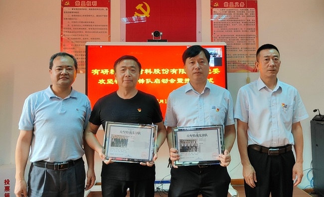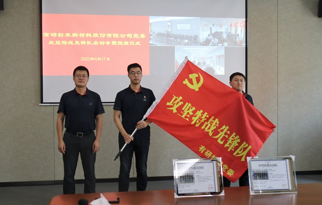 6月17日,有研粉材黨委按照“穩(wěn)增長(zhǎng)、防風(fēng)險(xiǎn)、促改革、強(qiáng)黨建”工作要求,圍繞公司2022年度重點(diǎn)工作,啟動(dòng)“攻堅(jiān)特戰(zhàn)先鋒隊(duì)”授旗儀式。會(huì)議采取線上線下相結(jié)合的方式進(jìn)行,分為粉材主會(huì)場(chǎng)、合肥分會(huì)場(chǎng)和重冶分會(huì)場(chǎng)。黨委副書記、紀(jì)委書記李聯(lián)榮主持會(huì)議。